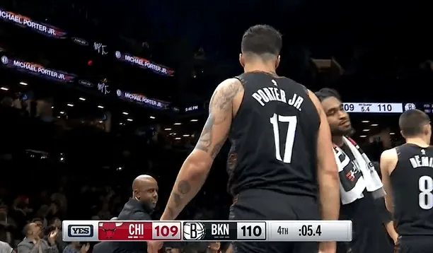 虎扑01月17日讯 今日NBA常规赛,篮网主场对阵公牛的比赛已经结束,篮网110-109战胜公牛。比赛第四节,小波特顶着科比-怀特完成强硬上篮,篮网完成5.4秒准绝杀。来源:虎扑 虎扑01月17日讯 今日NBA常规赛,篮网主场对阵公牛的比赛已经结束,篮网110-109战胜公牛。比赛第四节,小波特顶着科比-怀特完成强硬上篮,篮网完成5.4秒准绝杀。来源:...
